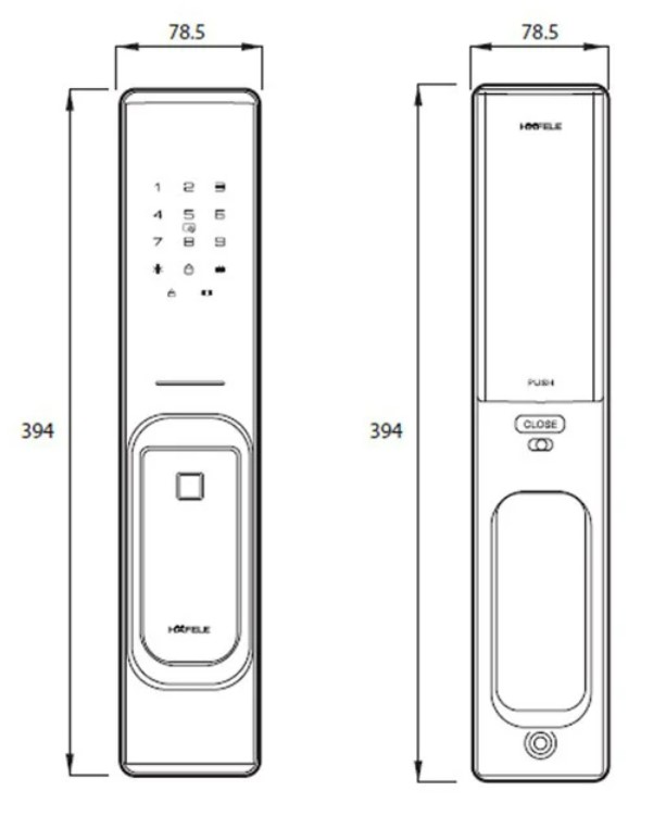 Kích thước khóa điện tử PP8100 Hafele 912.20.260